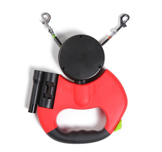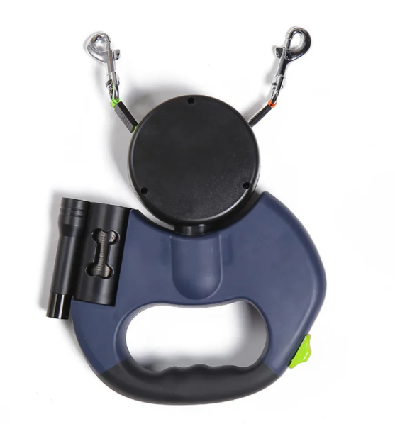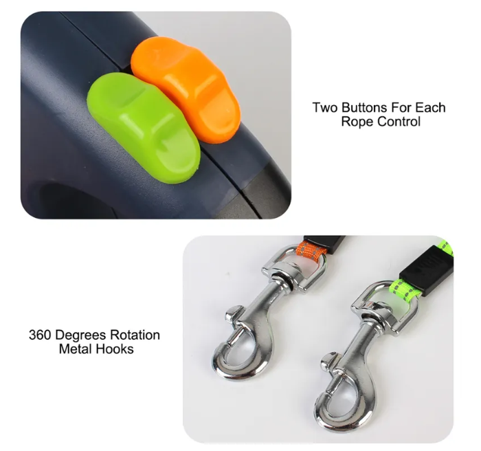 The Dual Control Retractable Dog Leash features independent retractable cords and a 360° rotating system that lets both dogs move freely while you stay in control.